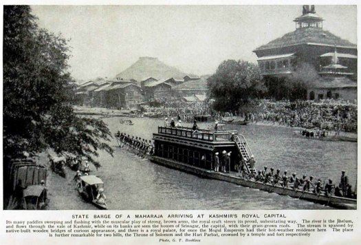 The Hindus of KashmirThe bright garments of KashmirLeisured beauty of KashmirTravelleing by Ekka through the heights of SrinagarState barge of MaharajaPaper Mâcheé merchant at his accountsGrass grown roofs by Srinagar’s turbid stream