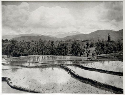 Rice fields in the Kashmir Valley as seen from the Banihal Pass