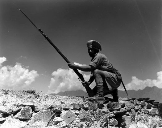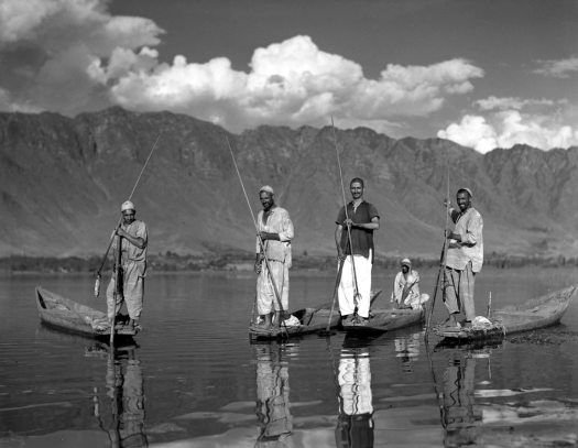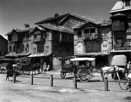 A tonga stand, SrinagarSrinagar, iconic Subhana tailor shop A Kashmiri man with his hookahA tonga stand, SrinagarDal boatmen posing for a photoSrinagar cityJamia Masjid and Koh-e-MaranGuards at old fort in Srinigar demonstrate how ancient cannon was loaded to be fired. Srinagar, Kashmir, 1945Sikh guard poses with vintage rifle, Srinagar, Kashmir, 1945Four young women, 1945