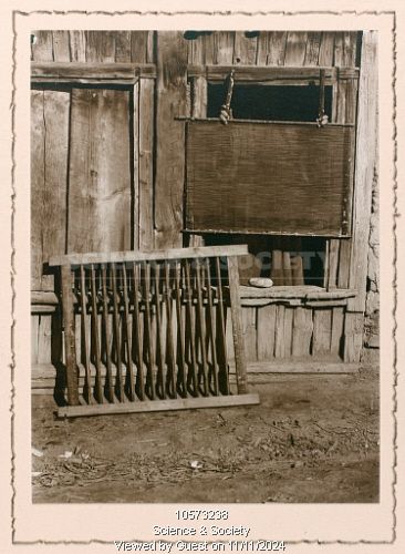 The pulp is mixed with water and placed on a framed porous screen. The water drains away leaving the paper which is then presed and dried. This method of paper-making was also used in Europe until the end of the 18th century, when machines for making continuous rolls of paper were introduced. Wood pulp and cellulose have largely been used in paper manufacture since the 19th century, but plant fibres and rags are also still used, as well as recycled paper.Paper mould and frameDrying the paper